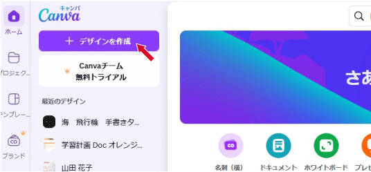 テンプレートは、「+デザインを作成」ボタンからも選ぶことができます。